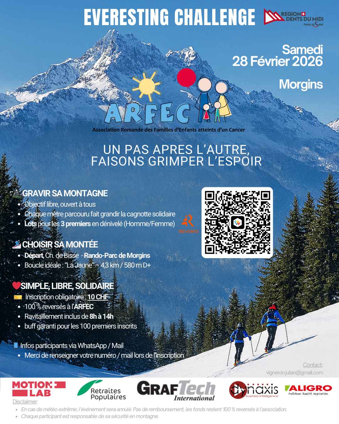 Le 28 février 2026, Morgins accueillera l’Everesting Challenge, un événement sportif, solidaire et entièrement caritatif organisé au profit de l’ARFEC (Association Romande des Familles d’Enfants atteints d’un Cancer).